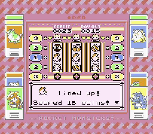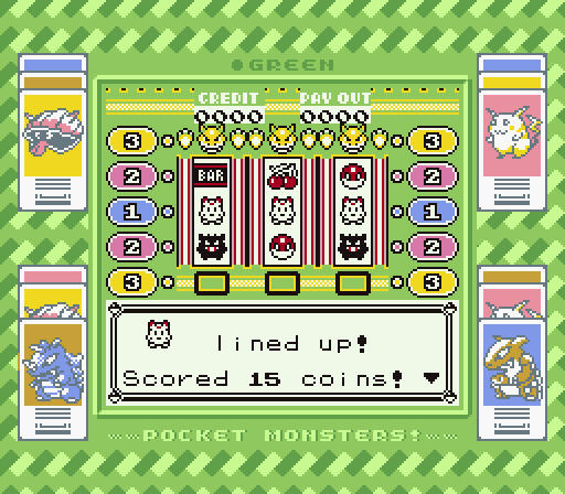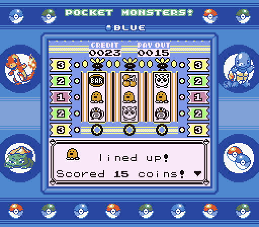 Each version has a different design for the slot machines at the Game Corner, as well as a unique Super Game Boy border when played on a SNES or the GB Tower in Pokémon Stadium.